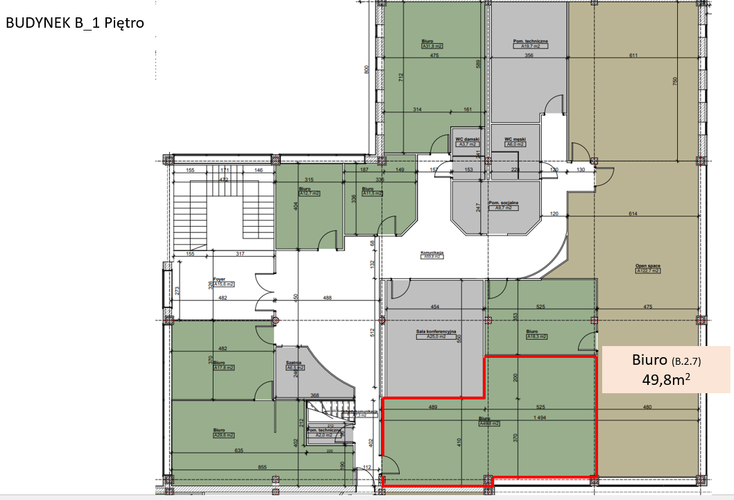 Powierzchnia wspólna obejmuje m.in.: salę konferencyjną, zaplecze kuchenne, sanitariaty oraz ciągi komunikacyjne.